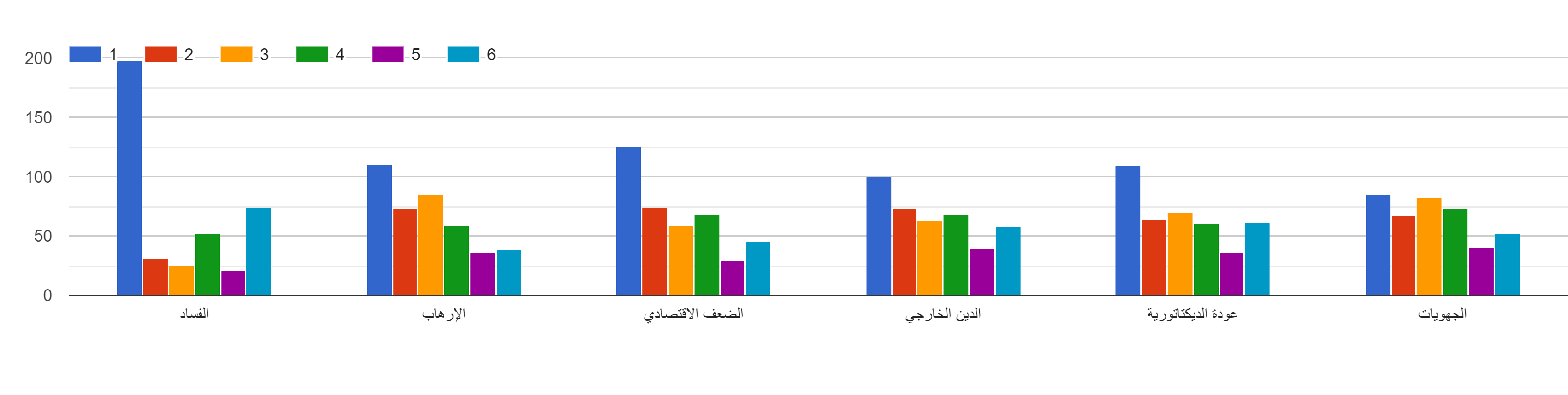 شكل 9 تقدير المشاركين في الاستبيان للمخاطر التي تواجه الانتقال الديمقراطي، من الدراسة المسحية التي أنجزها فريق العمل