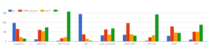 شكل 1 مستوى ثقة المشاركين في الاستبيان في مؤسسات الدولة، الدراسة المسحية التي أنجرها فريق العمل