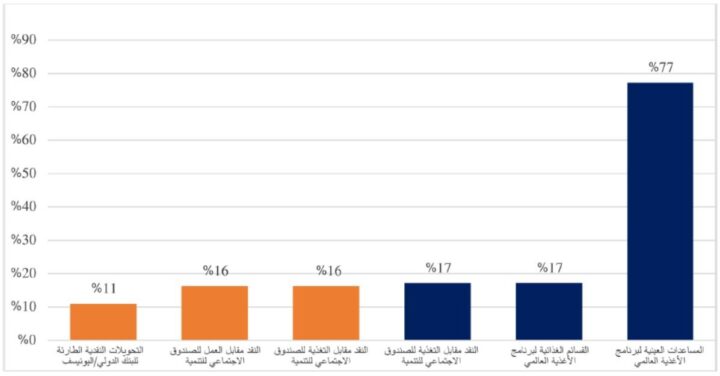 - تمويل ودعم الأنشطة/المشاريع الاقتصادية الاجتماعية: كمشاريع النقد مقابل العمل واسعة النطاق، والمبادرات ذات العمالة الكثيفة المرتبطة (مساعدات نقدية مشروطة)، والأعمال التجارية المتوسطة والصغيرة والأصغر، خصوصاً تلك التي تأثرت بالنزاع وتلك المعزِزة للأمن الغذائي.