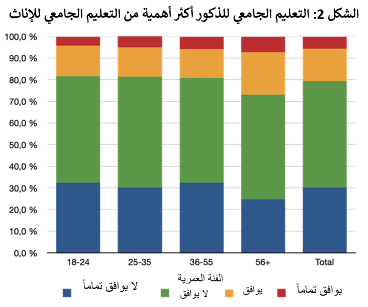 | الشكل 2: دعم المساواة بين الجنسين في المجال العام بين الذكور |