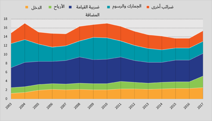 شكل 2 - تطور الإيرادات الضريبية باعتبارها نسبة من الناتج المحلي الإجمالي في الفترة بين عامي 2005-2017
