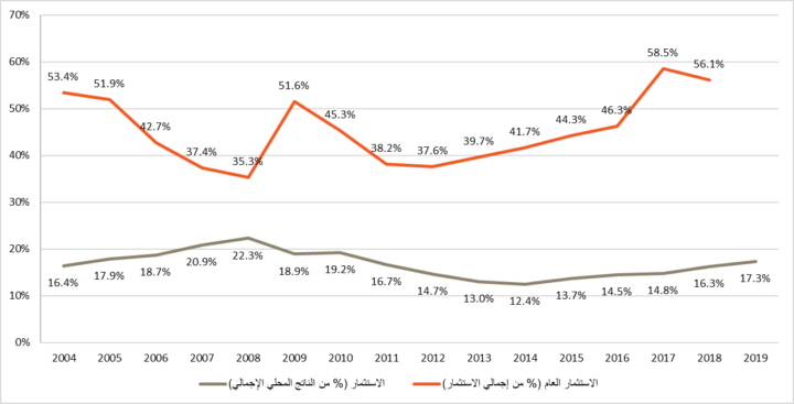 الشكل 5: إجمالي الاستثمار والاستثمار العام