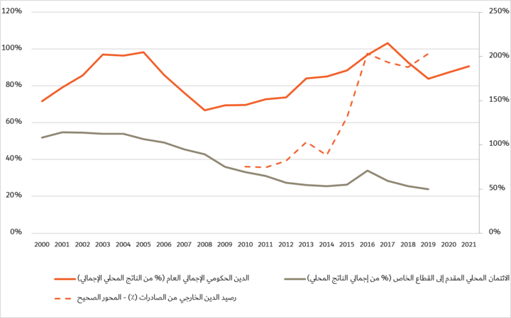 ملحوظة: "رصيد الدين الخارجي" هو مجموع الديون طويلة الأجل العامة والمضمونة من قبل الحكومة والخاصة غير المضمونة، واستخدام ائتمان صندوق النقد الدولي، والديون قصيرة الأجل.