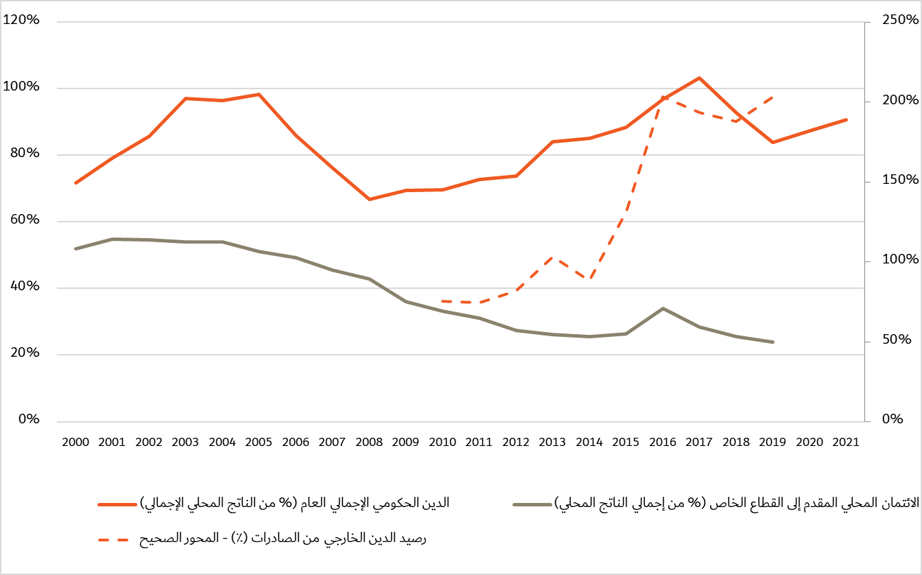 نناقش فيما يلي بشيء من التفصيل أنّه مع تحسّن المشهد الماليّ في مصر بعد عمليّة ترسيخ الاستقرار الناجحة في عام 2016، التي قادها صندوق النقد الدوليّ، إلّا أنّ ذلك لم يكن كافياً للتعامُل مع المشكلات الأساسيّة طويلة الأجل التي تواجه الاقتصاد؛ وعلى غرار الجهود السابقة الرامية إلى تحقيق الاستقرار، لم تقدِّم للبلاد سوى فرصة مداها سنوات قلائل لتنفيذ إصلاحات أعمق. وفي أعقاب أزمة كورونا، صارت تلك الفرصة أضيَق؛ إذ يواجه الاقتصاد الآن خطراً حقيقيّاً بالانهيار على المدى المتوسّط إذا لم تتحسّن الأمور الأساسيّة، وهي الاقتصاد والظروف الاجتماعيّة والقواعد السياسيّة الحاكمة. ولن يؤدي تراكم الديون الأجنبيّة من أجل تجنّب مواجهة المشكلات إلا إلى تفاقُم الاختلالات القائمة لدرجة تجعلها مستعصية على الحلّ مستقبَلاً.