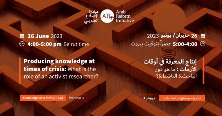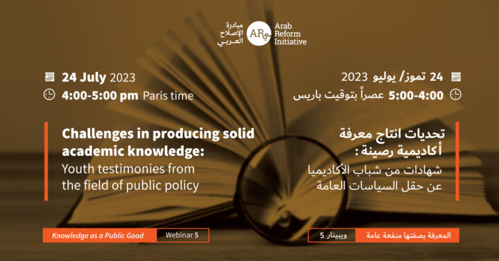 Scaling-up the capacity of knowledge producers includes understanding how scholars are contributing to agenda-setting and policy influence and how this process is occurring in different contexts, as well as the opportunities and constraints to scholars’ contribution to policymaking and contributing to shaping public opinion. In this light, ARI is producing a series of in-depth research papers and webinars that address these topics from the perspectives of experts in the region, who can place the production of scholarly knowledge within a broader perspective of pathways to policy change in the Arab region today; reconceive of knowledge as a public good; and assess the shifts, opportunities, and constraints for academic participation in policy development across the Arab region.