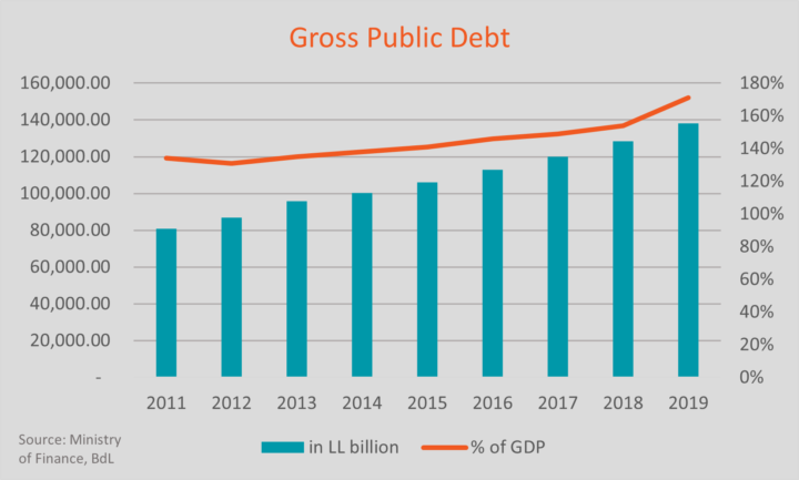 The economic collapse has vindicated in dramatic fashion Robert Mundell’s theory of the “impossible trinity,” which states that you cannot have a fixed foreign exchange rate, free capital movement and an independent monetary policy at the same time - and highlighted the costs of a reckless monetary policy, which depleted foreign exchange (FX) reserves accumulated at a monumental cost to try to maintain a fixed exchange rate and free capital flows. The most visible aspect of this policy was the Central Bank’s (Banque du Liban, or BdL) “financial engineering” operations based on accumulating foreign currencies through borrowing FX funds from local banks at unusually high interest rates compared to international rates. The policy that started in 2012 as a one-off, small scale operation quickly ballooned to unsustainable levels, as the BdL and political class desperately attempted to fund the state (and their clientelist networks) and keep the currency peg, in place since 1997. Political chiefs sought to appease their supporters by expanding the public sector, which ate more of the state budget year-on-year. By March 2020, before Lebanon defaulted on paying back holders of a USD1.2 billion Eurobond, its public debt had reached more than 170% of GDP1This figure was calculated based on the official rate of 1,507,5. It’s worth noting that the Debt/GDP ratio has since skyrocketed due to the depreciation of the lira and exceeds 275% (based on the IMF estimation of the GDP for 2020 ) -- one of the highest rates in the world. Yet, despite the unsustainable situation, the monetary and fiscal policies enjoyed consistent political backing, as parties used their access to state resources to fund their clientele networks.