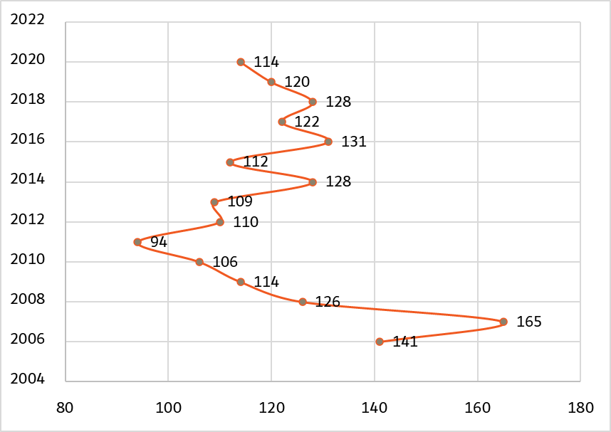 Deeper down, why has Egypt not been able to reach its potential for economic growth and job creation? In the decade before the 2011 uprisings, relatively high GDP growth was concentrated in narrow parts of the economy and failed to trickle down to wide segments of the population. In retrospect, little attention was paid in Mubarak's Egypt to the development of the institutions and rules needed to energize a market economy –  a trend that persists under the rule of President Sisi. Instead, the investment climate has been poor, with the country ranking in the World Bank’s “Doing Business” fluctuating between 94 and 165 (over about 190 countries world-wide) –  with the most recent rank of 114 in 2020. The main weaknesses are found to be in "enforcing contracts", and "resolving insolvency", pointing to the poor performance of the justice system and the banking sector. Other indicators point to a high level of corruption – Egypt scores 35/100 on the Transparency International Index (well below the global average of 43).10transparency.org
