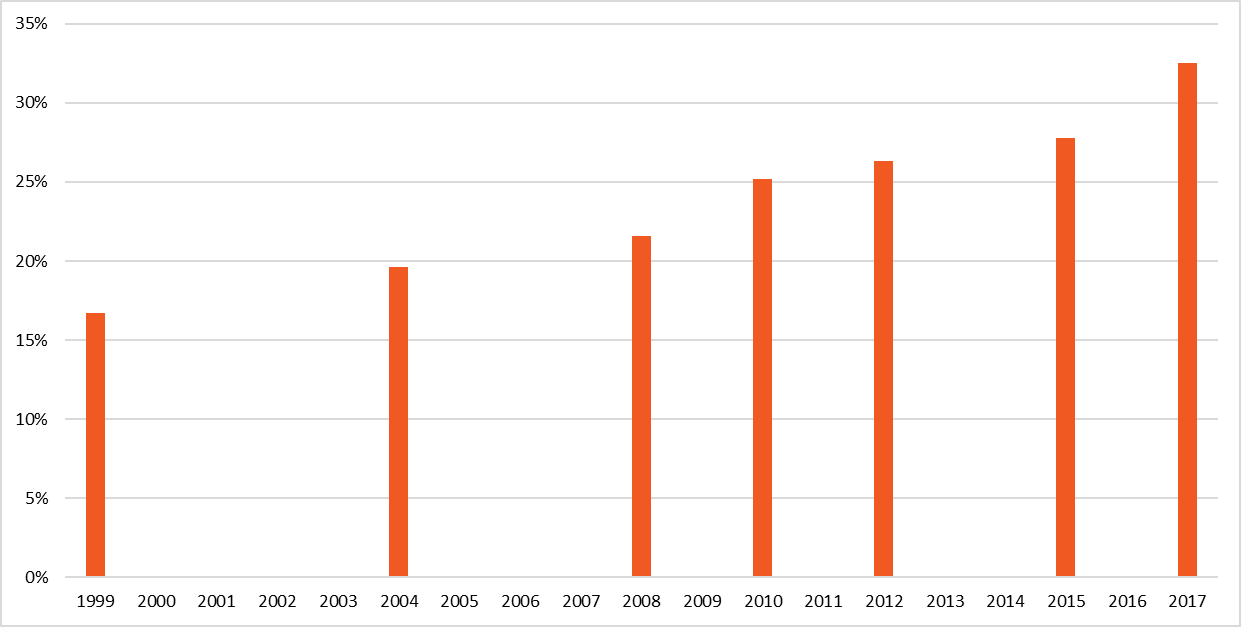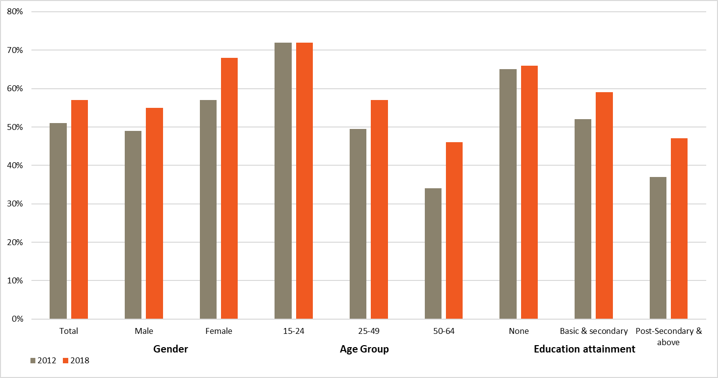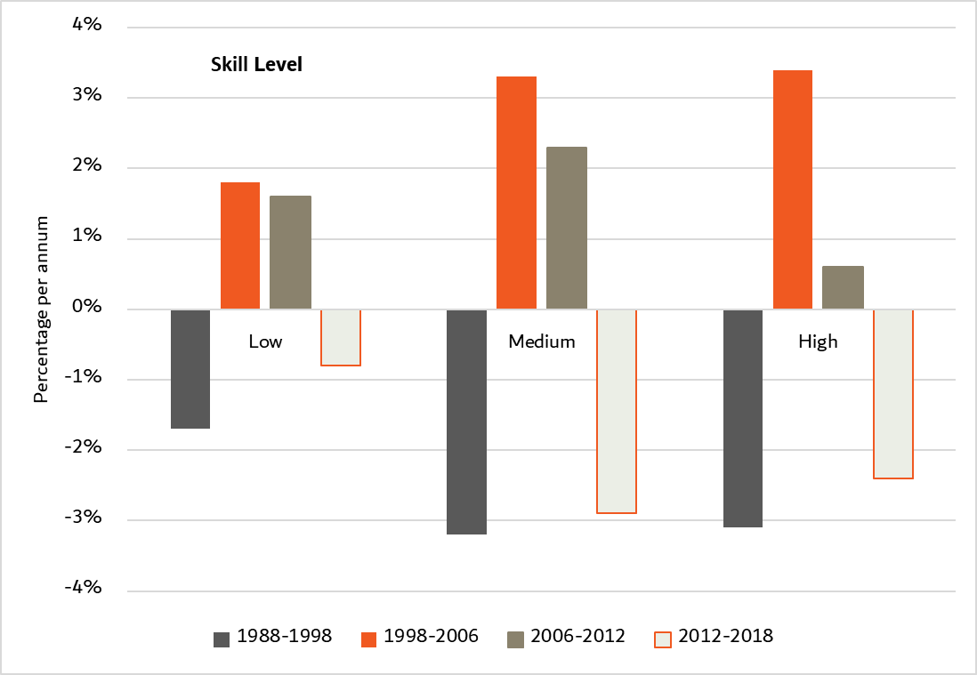 Source: ELMPS 1988 – 2018 as calculated by M. Said, R. Galal & M. Sami, “Inequality and Income Mobility in Egypt”, Economic Research Forum, Working Paper 1368, Nov. 2019.