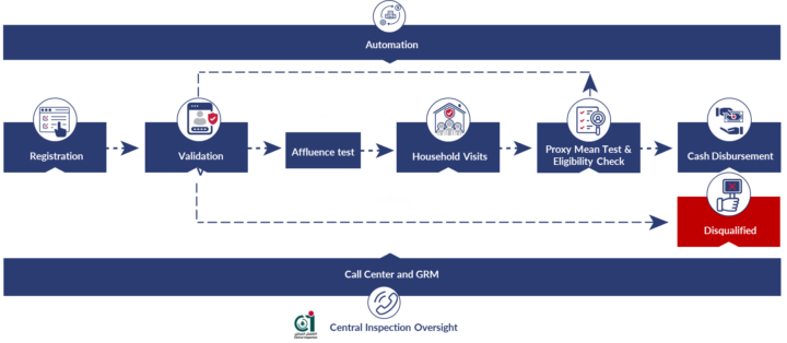 DAEM, the Intake and Registration Platform (IRP) developed as a portal on IMPACT, was created under the leadership of the Ministry of Social Affairs (MoSA) and the Presidency of Council of Ministers (PCM), with the oversight and governance insured by the Central Inspection of Lebanon. DAEM integrates all steps of the ESSN program, from registration to data validation, Proxy Means Test (PMT) scoring and payment, allowing monitoring and auditing of the program. It is an end-to-end digital platform catering for citizens and stakeholders’ needs.