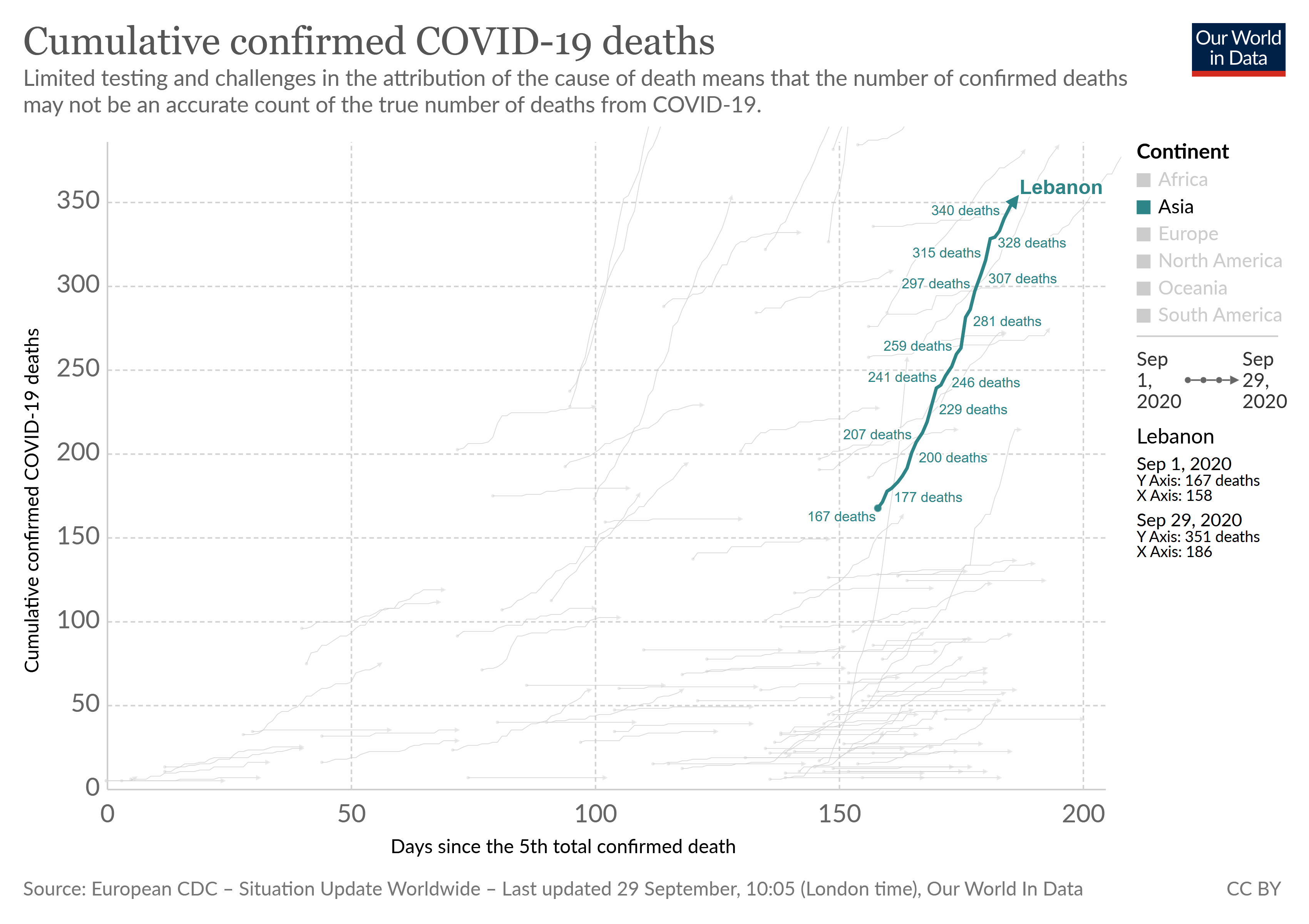 However, the government failed to carry through long-term measures necessary for the maintenance of this early success. It did not adopt policies to assist both an impoverished population and small businesses in facing an unprecedented socioeconomic crisis, which ultimately led to local resistance to strict lockdown measures. Above all, the government failed to develop a long-term strategy to counter the pandemic despite repeated calls and widespread knowledge that the novel coronavirus was going to remain a threat beyond 2020. The majority of cases and deaths have occurred in the past 4 weeks (see figures below), in the absence of clear interventions and consistent communication with the public. We, the Independent Lebanese Committee for the Elimination of COVID-19 (zerocovidlb.com), a group of concerned citizens with various health-related expertise, have come together to sound the alarm and offer paths out of the current crisis. Overall, and in the light of the evolution of COVID-19 in the country, we are highly concerned with the absence of both a clear and comprehensive national strategy and a sound action plan to respond to the critical situation.