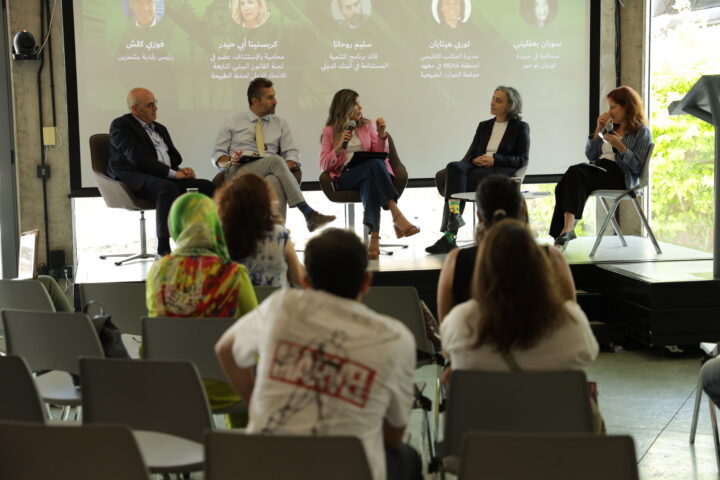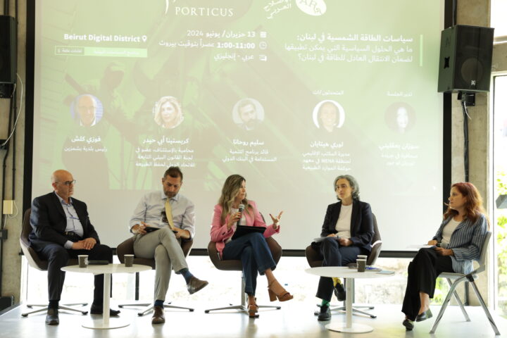 The first panel, titled “Solar Energy Policy in Lebanon: What are the policy solutions to ensuring a just energy transition in Lebanon?”, aimed to foster dialogue and knowledge exchange on renewable and solar energy sectors in Lebanon. The panel was moderated by environmental journalist at L’Orient-Le Jour Suzanne Baaklini and featured insights from MENA Director at the Natural Resource Governance Institute Laury Haytayan, Program Leader for Sustainable Development Sectors at the World Bank Group Salim Rouhana, attorney at law and member of the International Union for Conservation of Nature’s World Commission on Environmental Law Christina Abi Haidar, and Mayor of Bechmizzine, Lebanon, Fawzi Kalash.