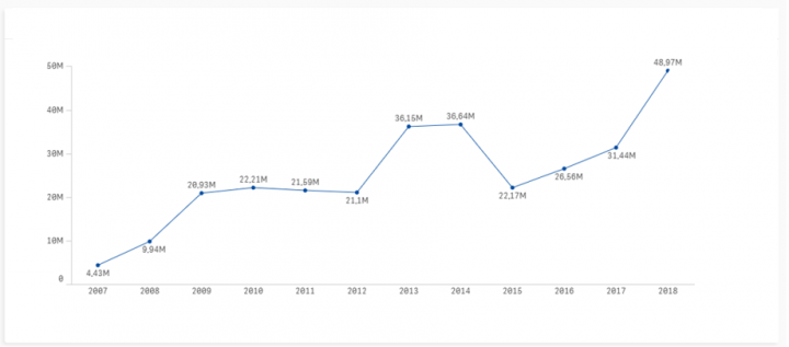 Figure 1. Spending on Security System Management and Reform by 16 members of the EU in the Middle East (West Bank and Gaza, Iraq, Lebanon, Yemen, Jordan, Syria, Oman, and Saudi Arabia). Figures for 2018 are not fully accounted for. Source: https://euaidexplorer.ec.europa.eu/content/explore/recipients_en